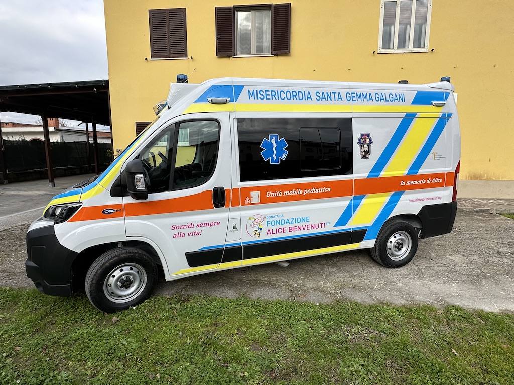 Ambulanza Pediatrica donata dalla Fondazione Alice Benvenuti Ets alla Misericordia di S. Gemma Galgani